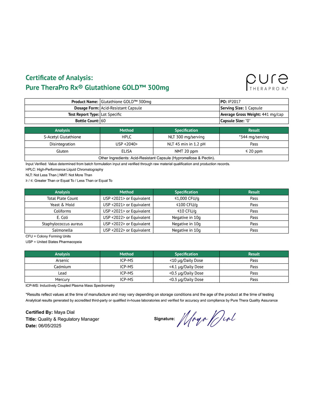 All Pure TheraPro Rx Formulas Meet or Exceed cGMP Quality Standards. This product is manufactured in the USA in a FDA inspected, NSF and GMP-certified facility for guaranteed quality and potency.