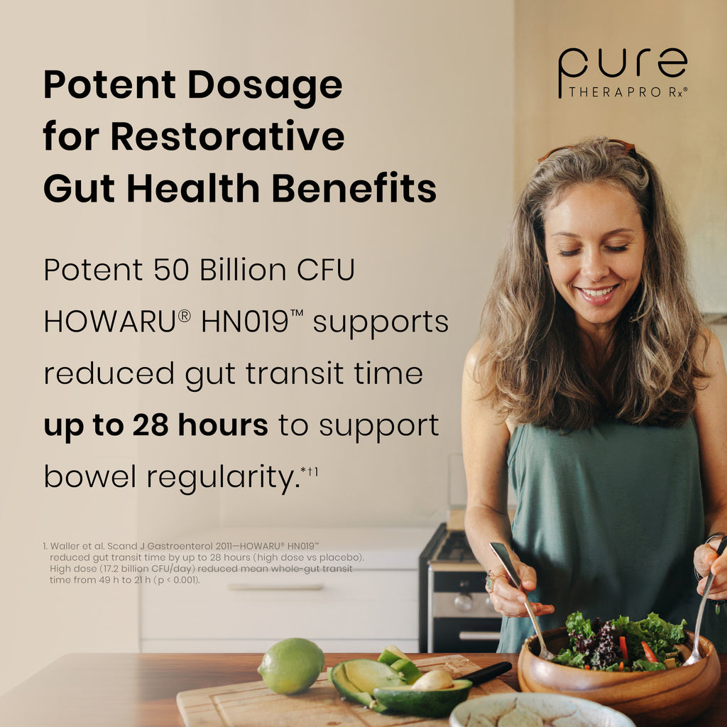 - Delivers four highly researched strains of beneficial bacteria, including the extensively studied HOWARU® HN019 strain of Bifidobacterium lactis.